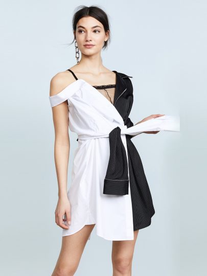 STRIPED SMOCKED OFF THE SHOULDER DRESS