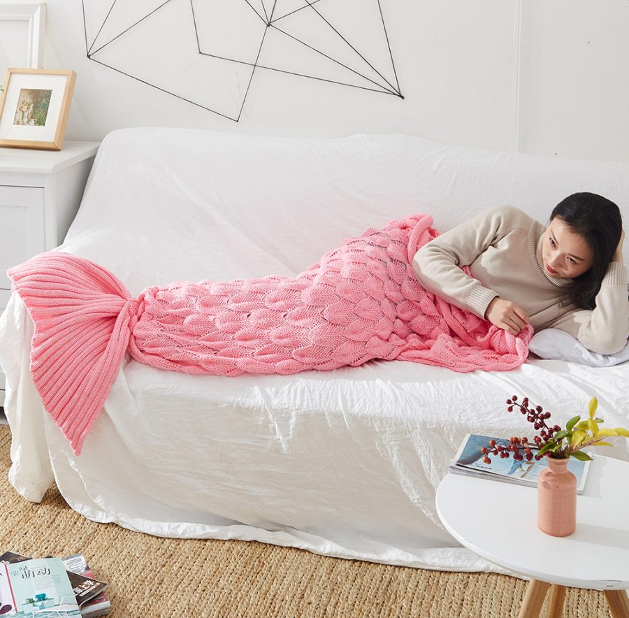 Pink Mermaid tail knit blanket