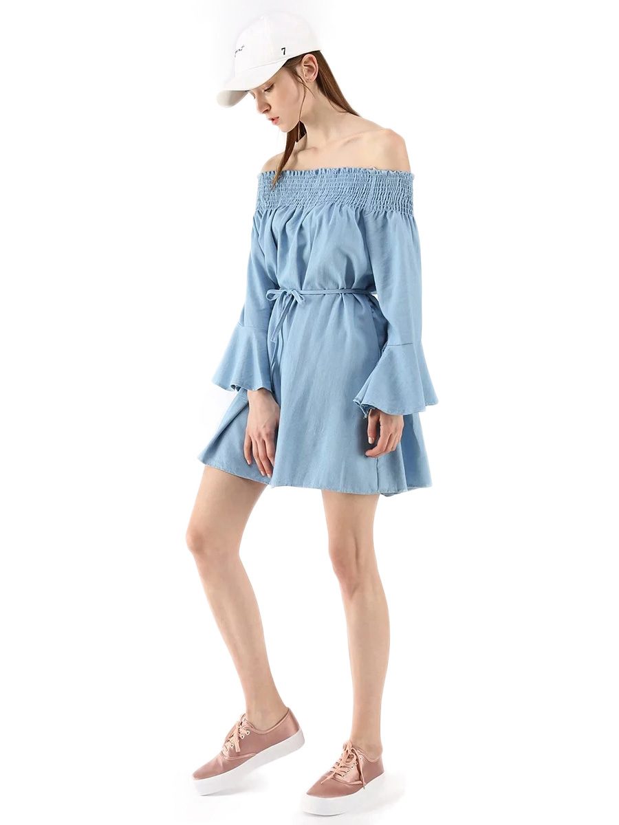 Popular elements:Solid color off-the- shoulder